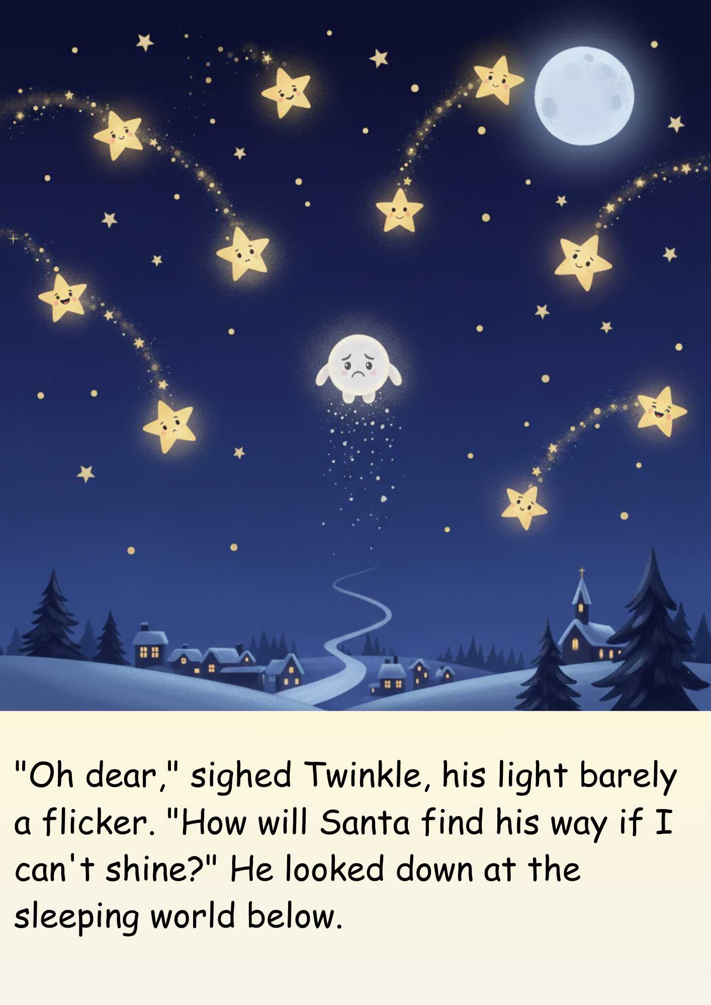 Join Twinkle, a tiny star who wakes up on Christmas Eve to a big problem – he’s lost his sparkle! With Santa’s journey relying on the stars, Twinkle fears Christmas might be ruined. But when a wise old owl offers a helping wing, Twinkle embarks on a magical adventure to rediscover his light.